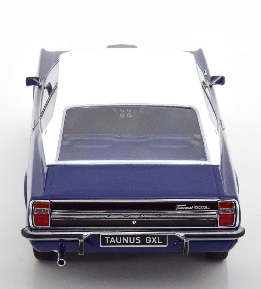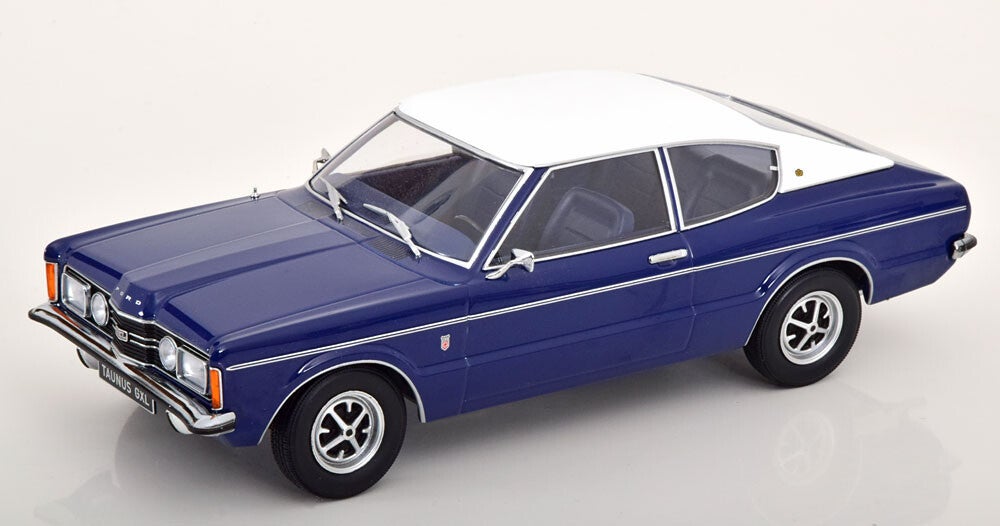 KK Scale Ford Taunus GXL Coupe 1971 mit Vinyldach dunkelblau/mattweiß KKDC181005 1:18