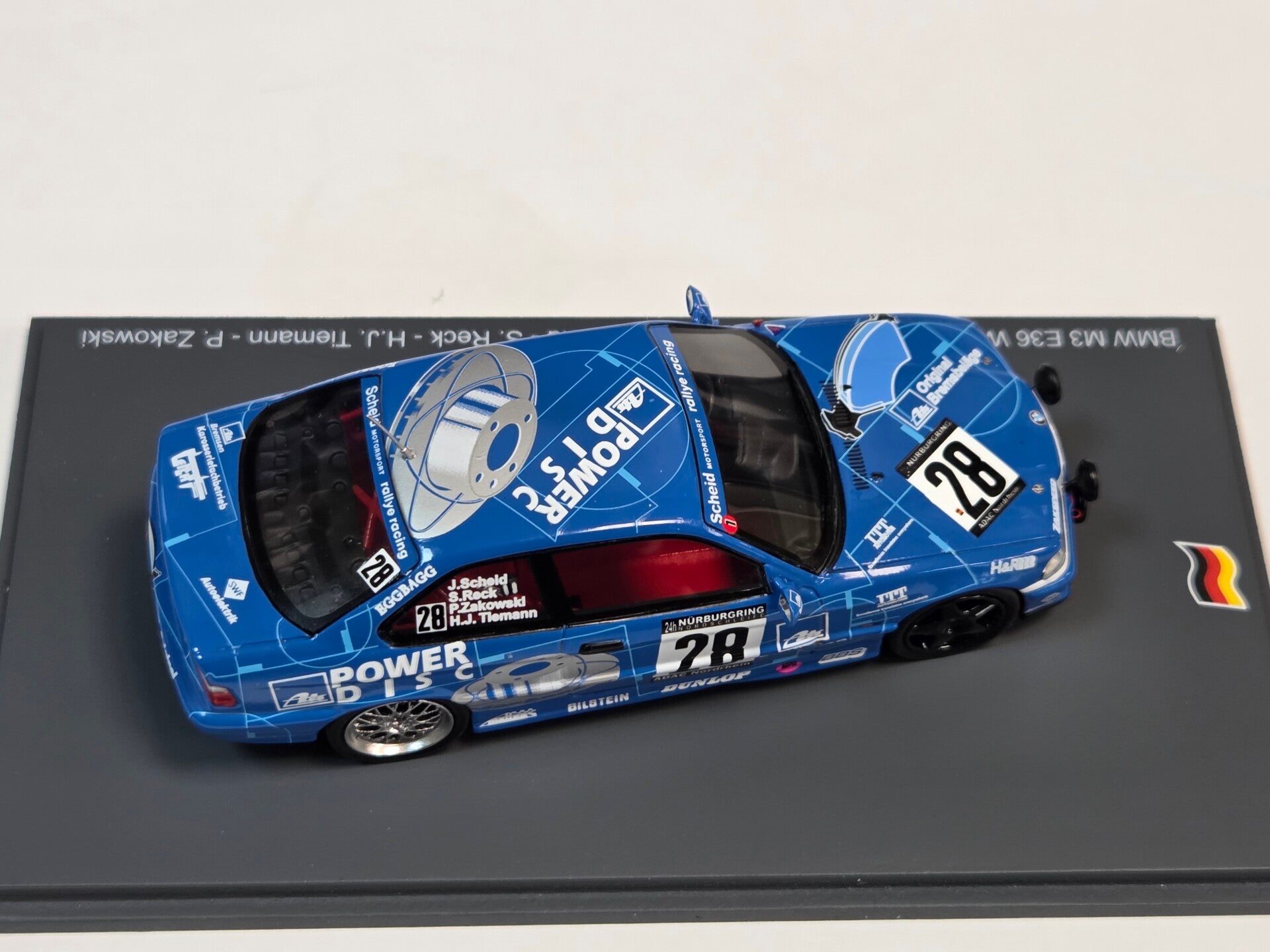 Johannes Scheid, Sabine Schmitz (damaliger Nachname RECK), Hans Jürgen Tiemann und Peter Zakowski haben 1997 auf dem blauen ATE BMW M3 der Baureihe E36 das 24 Stunden Rennen auf dem Nürburgring gewonnen.
