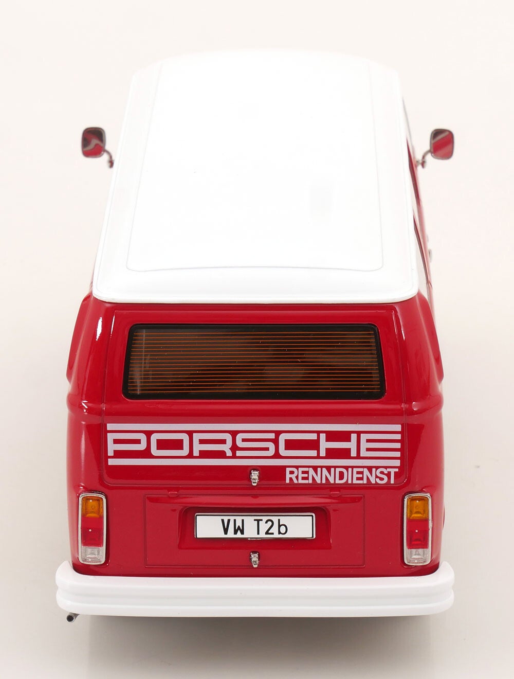 KK Scale VW T2b Bus 1972 rot/weiß Porsche Renndienst mit Fuchsfelgen KKDC181364F 1:18